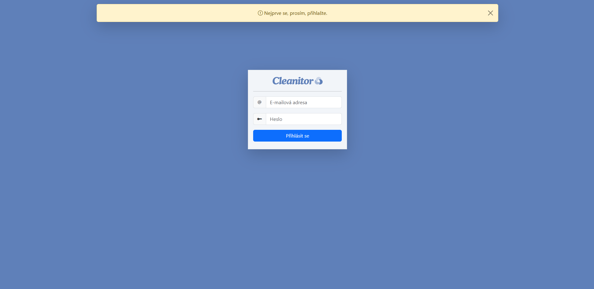 Když se uživatel přihlašuje k informačnímu systému Cleanitor poprvé, je jeho heslo totožné s jeho e-mailovou adresou. Pro přihlášení tedy zadá svoji e-mailovou adresu také do pole Heslo.