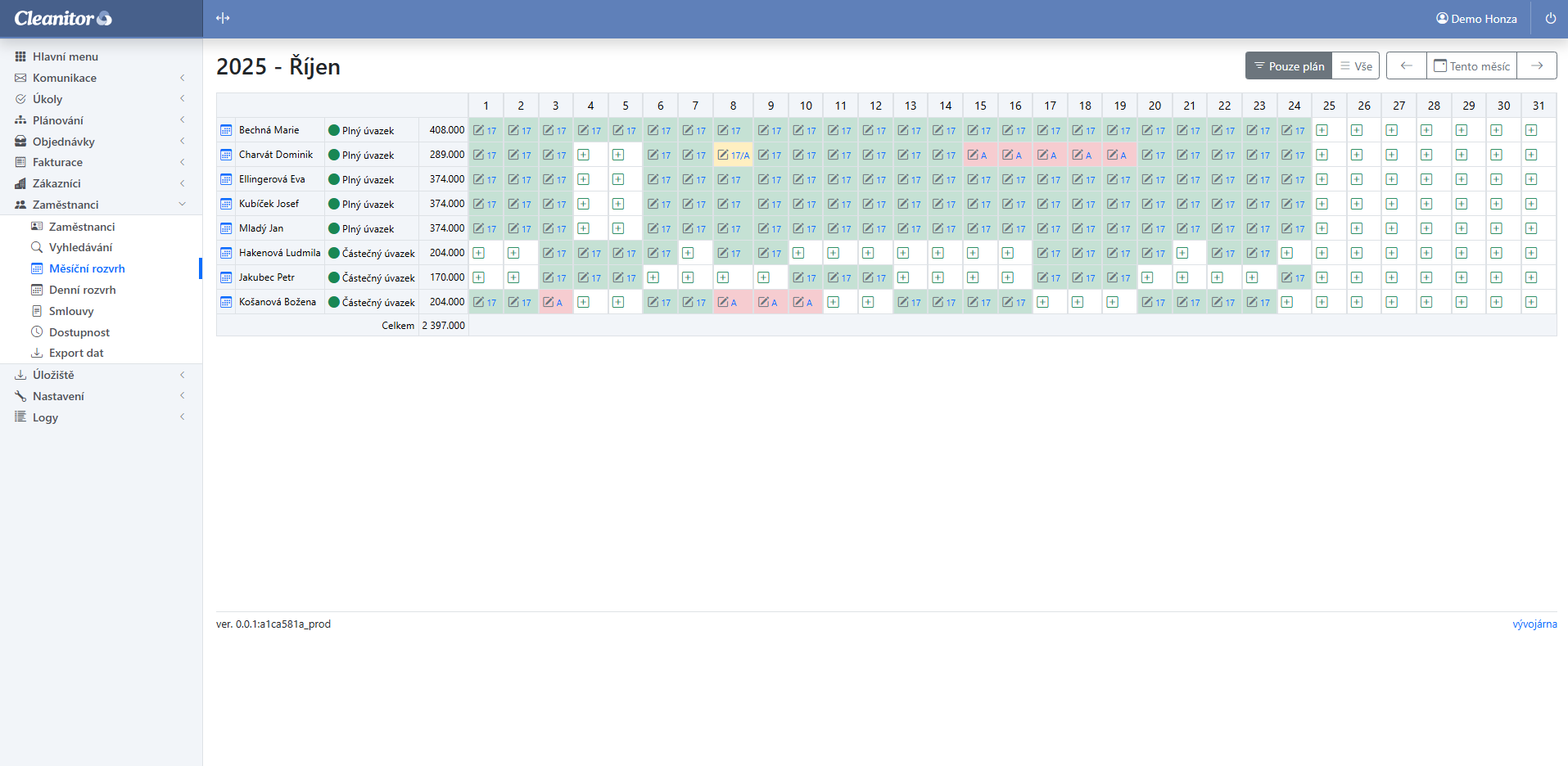 Z pohledu dostupnosti pak systém Cleanitor rozlišuje dva typy zaměstnanců: